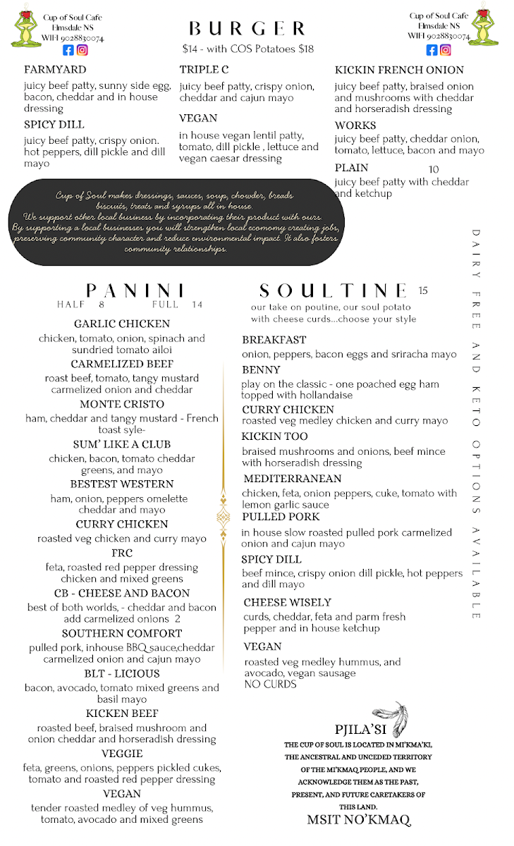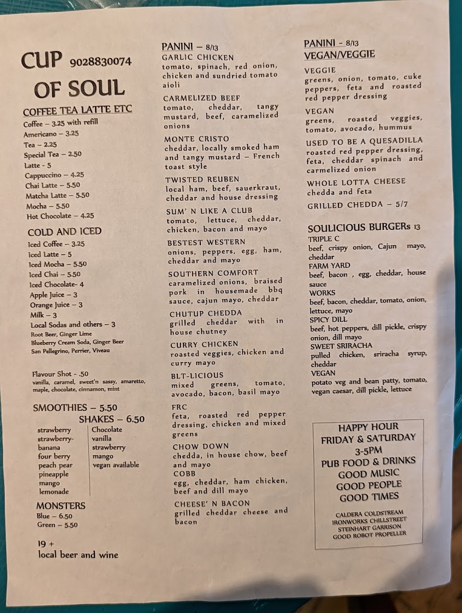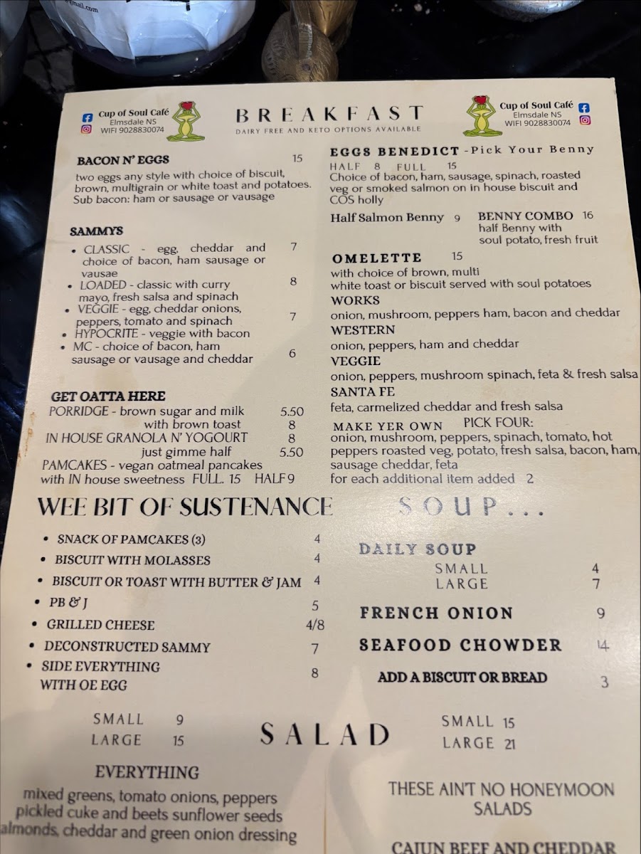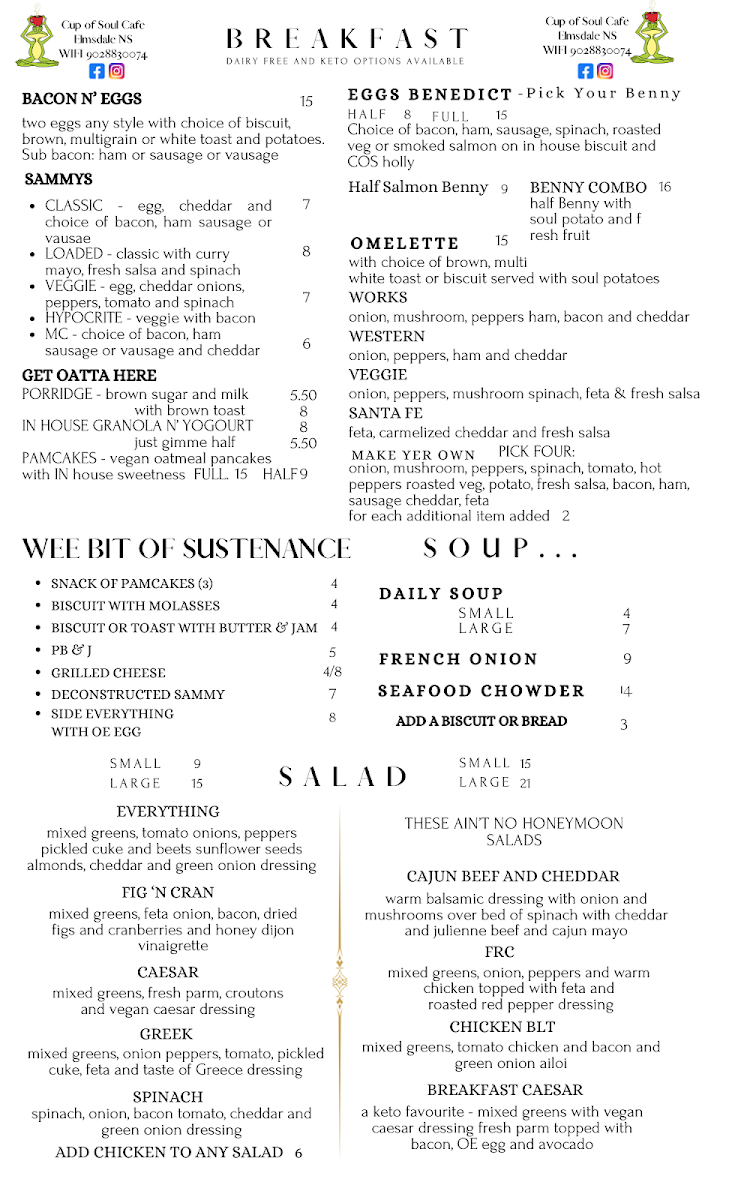 The menu at Cup of Soul Cafe offers a welcoming blend of simple café favorites and comforting, thoughtfully prepared meals. It strikes a balance between classic breakfast dishes and a variety of satisfying casual bites, serving both traditional and vegan options to fit different tastes and dietary preferences.